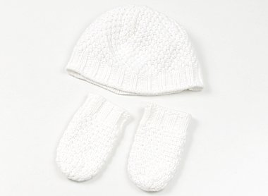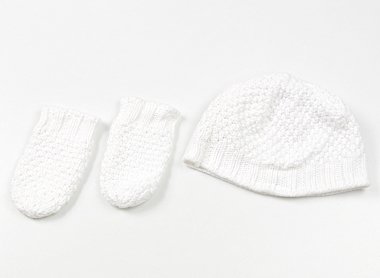 実際のサイズ表記は6-12monthsです。帽子頭周り実寸は40cm。おそろいのミトン付き!目立った汚れもなく綺麗なお品物です。