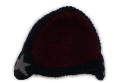 - 実際のサイズ表記は6-12months、実寸は約45cmです。表面はアクリル100%、裏側は綿100%のニット帽です。