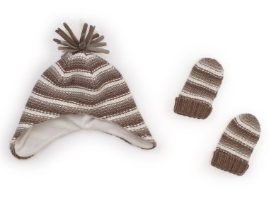 実際のサイズ表記は3M~6Mです。外側綿100%・内側ポリエステル100%(フリース)素材です。おまけでお揃いでミトンをおつけします。