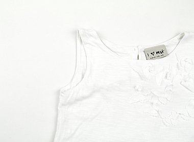 - 実際のサイズ表示は3-4yrs/104cmです。後ろの裾が少し長いデザインです。布の蝶々があしらわれています。