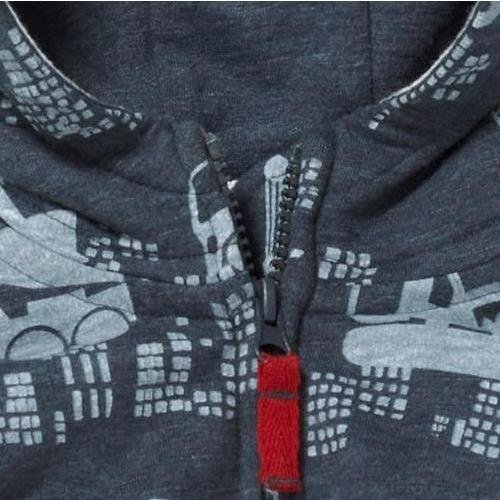 車柄がとてもかわいいグレーのパーカー。厚めの生地でできているので、寒くなる季節に羽織りたい。