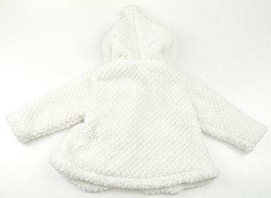 ふわふわした生地です。実際のサイズ表記は、9-12mths・11kgs/24lbsです。カットソー生地の裏地がついています。前身ごろの首元付近に黄色いシミがあります。外遊びや洗い替え用にいかがでしょうか?