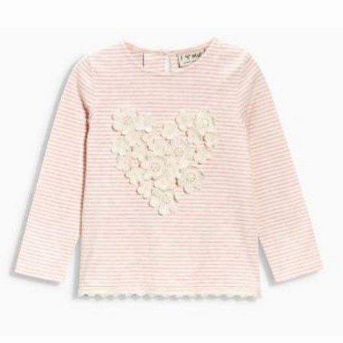 ボーダーの長袖Tシャツが入荷しました! 大きなレースの花でハートがつくられており、立体的になっています! 細めボーダーで裾にもレースがあしらわれているので上品に着れます。 【商品詳細】 ●素材:綿99% ラメ糸1% ●サイズ:2T-3T,3T-4T,4T-5T,5T-6T ●注意点: ○洗濯機、乾燥機は弱で。 ○漂白剤不可。 ○色落ちする場合がございますので、最初の洗濯時は白いものとは分けてください。 ○メール便:可