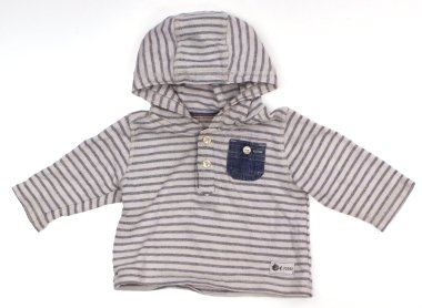 実際のサイズ表記は3-6mthsです。フードの根元にうっすらとした汚れはありますが、まだまだ普段着として活躍してくれそうです。