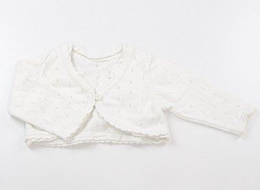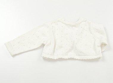 実際のサイズ表記は6-9monthsです。綿100%のカーディガン。袖に小さなシミがありますが、まだまだお使いいただけます。