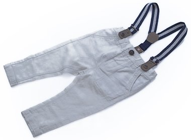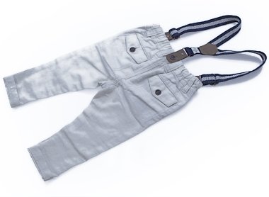 - 薄手の綿で夏に大活躍。サスペンダー付き、サイズ調整ゴムが付いています。実際のサイズ表記は6-9m。