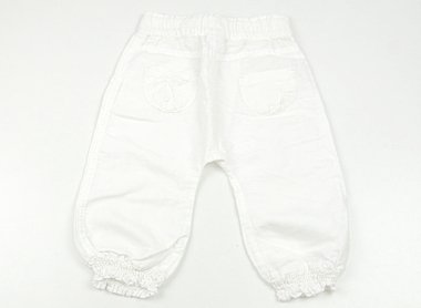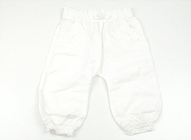- まだまだ普段着として活躍してくれそうです。透け感のあるパンツです。ウエストは総ゴムです。サイズタグが切り取られています。ウエスト22?、総丈38?、股下18?です。