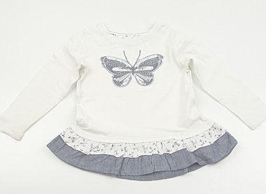 実際のサイズ表記は86-92cmです。袖や前身頃所々に黄色いシミがあります。外遊びや洗い替え用にいかがでしょうか?