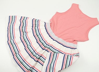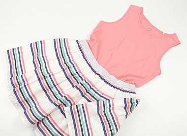 - 実際のサイズ表記は116cmです。タンクトップに毛羽立ちが、スカート下部分に1mm程の黒点の汚れがあります。まだまだ普段着として活躍してくれそうです。