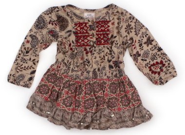 - 実際のサイズ表記は6-9mです。カットソー素材で、スカートの裾にスパンコールが付いた可愛いデザインです。使用に支障はありませんが裾上の縫い目が少しほどけています。まだまだ普段着として活躍してくれそうです。着丈約36cmです。
