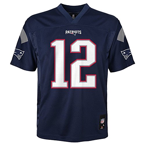 トム新しいEngland Patriots Brady # 12ユースミッドティアNavy Jersey with Super Bowl XLIX Champions Tシャツ