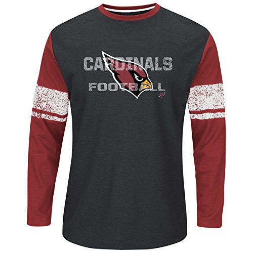 マジェスティックArizona Cardinals 2 x Tall 2 X LT Distressed印刷長袖シャツ – チャコールグレー&Cardinal Red