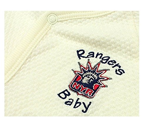 にほとんど# 1 1つのファンの外観で着心地も素晴らしく、このニューヨークレンジャーズNHL赤ちゃん乳児レトロスリーパジャマ。このスリーベビー男の子または女の子と柔らかい質感の素材を使用しており、、中性クリーム色が特徴で、甘いです。また、ヴィンテージに刺繍されたチームロゴ左胸、およびスナップ閉鎖から足首を胸に。ベビー男の子のサイズ変更に使用されます。