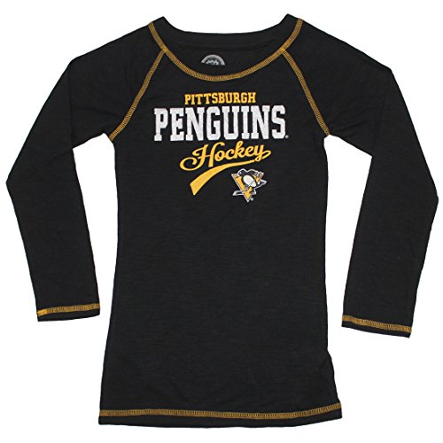 Girls Pittsburgh Penguinsアスレチッククルーネック長袖グリッターTシャツ ブラック