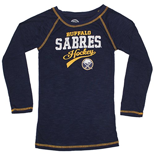 Girls Buffalo Sabresアスレチッククルーネック長袖グリッターTシャツ