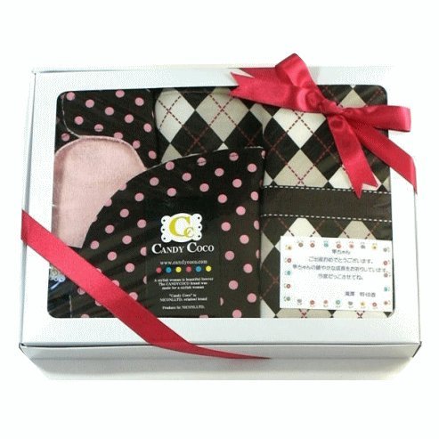 出産祝い メッセージのしを付けて 人気 ギフト 0~4才女の子スタイ2枚・おむつマット&ポーチ4点/ブラウンアーガイル