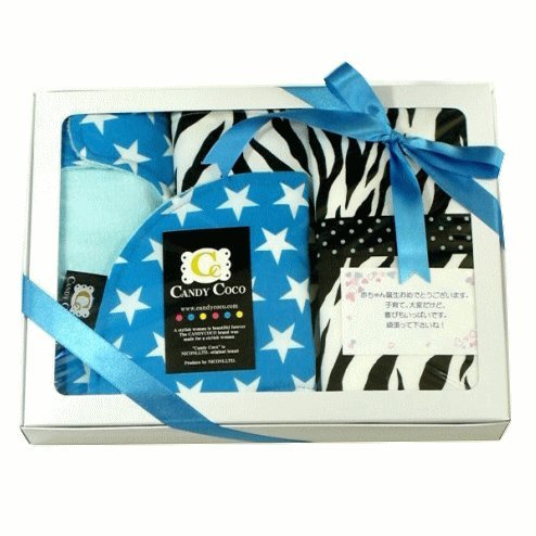 出産祝い メッセージのしを付けて 人気 ギフト 0~4才男の子スタイ2枚・おむつマット&ポーチ4点/ブルースター