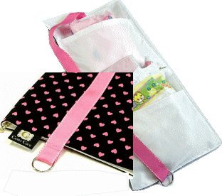- ポーチはポケット3つ。真中は母子手帳や薬など収納できるファスナー付き。ポーチサイズ:約43×21cm 高さ:約0.5cm