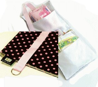 - ポーチはポケット3つ。真中は母子手帳や薬など収納できるファスナー付き。ポーチサイズ:約43×21cm 高さ:約0.5cm