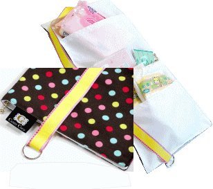 - ポーチはポケット3つ。真中は母子手帳や薬など収納できるファスナー付き。ポーチサイズ:約43×21cm 高さ:約0.5cm