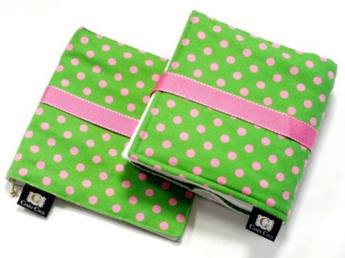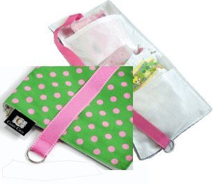 出産祝い ギフト すぐ使える ベビー おむつ替えマット&おむつポーチ2点/グリーンピンクドット