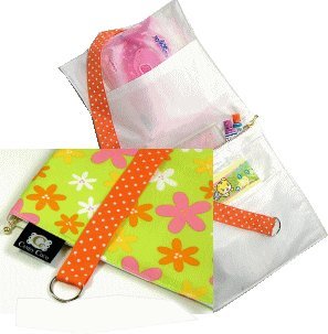 - ポーチはポケット3つ。真中は母子手帳や薬など収納できるファスナー付き。ポーチサイズ:約43×21cm 高さ:約0.5cm