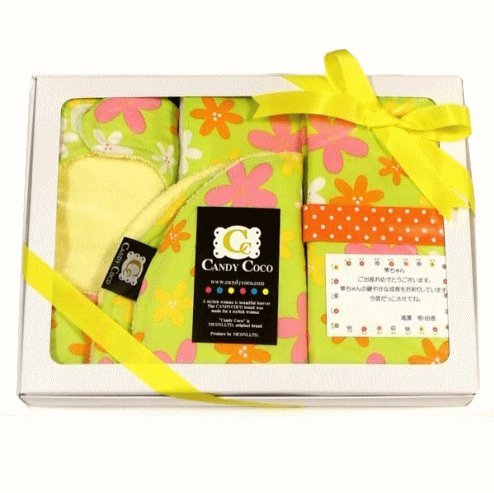 キャンディココの出産祝いベビーギフトセット【よだれかけ2枚組・おむつ替えマット・おむつポーチ4点】。よだれかけは遊び用ショートタイプ(縦30cm 首周り30~32cm幅26.5cm)&お食事用ロングタイプ(縦40cm 首周り30~32cm幅26.5cm )の2枚組セット。裏はタオル地なので、やわらかく吸収性抜群で、やんちゃが始まったころからお使いいただく大きめサイズです。おむつ替えマットはタオル地のふかふかマット(サイズ:約60×41cm)です。クルクル丸めて収納できるので外出にも便利です。おむつポーチは上下ポケットにおしりふきや紙おむつがラクラク入ります。 真ん中のファスナー付きポケットには保険証、母子手帳、必要な薬などを入れられ、母子手帳ケースやおしゃれポーチとしてもご利用いただけます。(サイズ:約43×21cm)。送料無料ですが、一部沖縄、離島は300円~加算です。