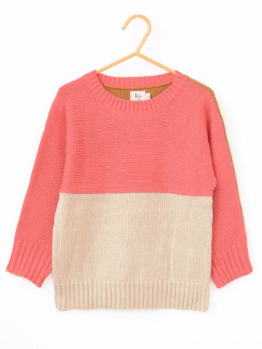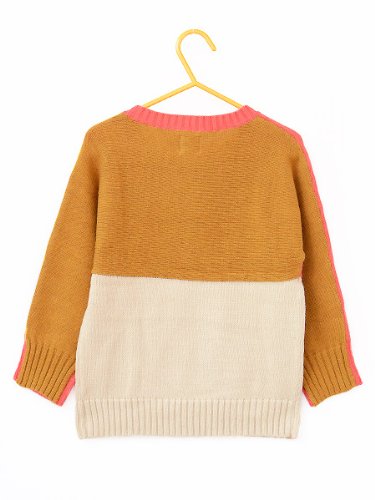色が楽しいニット チクチクしない着心地の良い上質な素材。 厚くなく薄くなくのちょうどいい感じの厚みです。 フロントはピンク+ベージュ、バックはおうどいろ+ベージュ。 上と下で糸の向きが違うこともポイント。 シンプルでオーソドックスなシルエットで クールさをプラスしてくれます。 女の子、男の子問わないユニセックスデザインです。 ・サイズ 2Y 着丈38 身幅28.5 裾幅23.5 袖口8 裄丈36.5 4Y 着丈41 身幅32 裾幅28 袖口8 裄丈40.5 6Y 着丈45 身幅34.5 裾幅31 袖口8 裄丈44.5 (cm)平置きサイズになります。・素材 コットン60% ナイロン30% マリーノウール10%