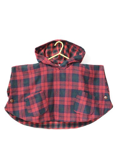 NICONICO,ニコニコ,ウールチェックポンチョケープ,レッド,ポンチョ レッド,ニット キッズ,ケープ ポンチョ,ニット ジャケット,秋冬,ユニセックス,ベビー,キッズ,子供服