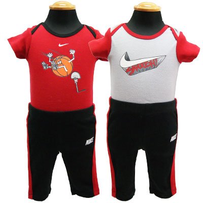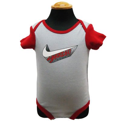 【アメリカ買付商品】 NIKE ナイキ ベビー ロンパース&レギンス 上下3点セットアップ 小さくったってオシャレで超かっこいいロンパース&レギンスセット☆ ギフトにもおススメです。 サイズ:3/6ヶ月 6/9ヶ月 カラー:グレー×レッド×ブラック 素材:コットン100% 洗濯表示:洗濯機可(※商品付属の洗濯表示をご覧ください。) 輸入国:アメリカ 生産国:中国