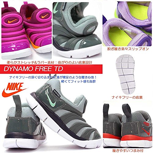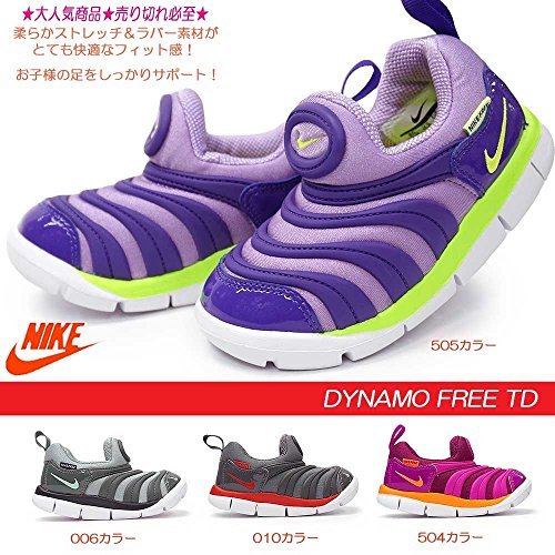 ストレッチ性に優れたブーティーとサポート性に富んだラバーオーバーレイのアッパーデザインはそのまま。●アウトソールを屈曲性、軽量性に富んだナイキフリーアウトソールに改良!●着脱は簡単なスリップオンタイプ。 ●サイズについて・・幅表示はありません。やや大きめのつくりです。●素材:アッパー:ゴム+人工皮革+合成繊維 アウトソール:合成底●ソール底の厚み:約2cm●重量:90g(サイズ14.0cm片足で計測の場合。ご希望のサイズによって少しずつ変わります。)●原産国:インドネシア●NIKE DYNAMO FREE TD 343938