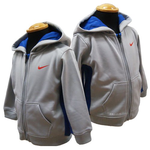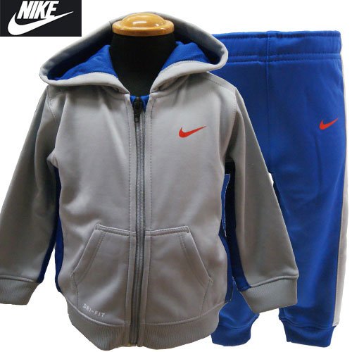 【アメリカ買付商品】 NIKE ナイキ ベビー ジャージ ボーイズ ジャージ 上下セット スポーツウエア ジップアップ -80~85cm 普段着にオシャレでかっこいいジャージ 裏起毛で暖か、動きやすくって機能性抜群、大活躍人気アイテム サイズ: 80~85cm/18m=身幅29cm 肩幅24cm 袖丈28cm 着丈32cm 股下26cm 85~90cm/24m=身幅31cm 肩幅25cm 袖丈33cm 着丈34cm 股下30cm カラー:グレー×ブルー 素材:ポリエステル100% 洗濯表示:洗濯機可(※商品付属の洗濯表示をご覧ください。) 輸入国:アメリカ 生産国:中国