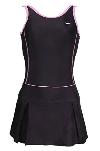 NIKE(ナイキ)のスクール水着。パイピングデザインのワンピースタイプです。人気のスカート付きタイプ。胸の内側にネームタグ付きで便利です。はっ水効果でさらっと快適で、素早く乾きます。140cm以上はパッドポケット付きなので、ジュニア女児にも安心です。
