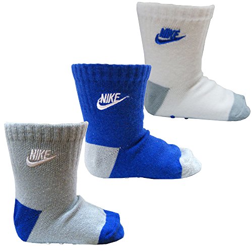 【アメリカ買付商品】 NIKE ナイキ ベビー靴下 ベビーソックス ブーティ 3足セット 靴下 滑り止め付 出産祝い 12~14cm 可愛いベビーソックス3足セット 滑り止め付 プレゼントにもお手頃で喜ばれるアイテムです。 サイズ:約12~14cm カラー:ブルー ホワイト グレー 素材:コットン ポリエステル ポリウレタン 洗濯表示:洗濯機可(※商品付属のお洗濯表示をご覧ください。) 輸入国:アメリカ 生産国:中国