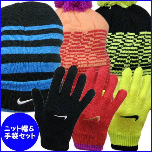 【アメリカ買付商品】 NIKE ナイキ キッズ ジュニア 子供用 ニット帽 手袋 セット 男の子 52~56cm - デザインA デザインA→ボーダーに二つ折り デザインB&C→ロゴ編み込みに雪洞 ニット二枚重ねで暖かいアイテムです。 ※メール便発送可 サイズ:各画像にてご確認ください カラー:各画像にてご確認ください 素材:アクリル100% 洗濯表示:手洗い(※商品付属の洗濯表示をご覧ください。) 輸入国:アメリカ 生産国:中国
