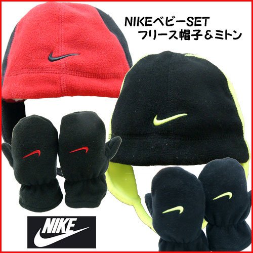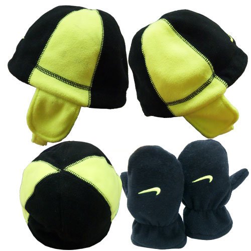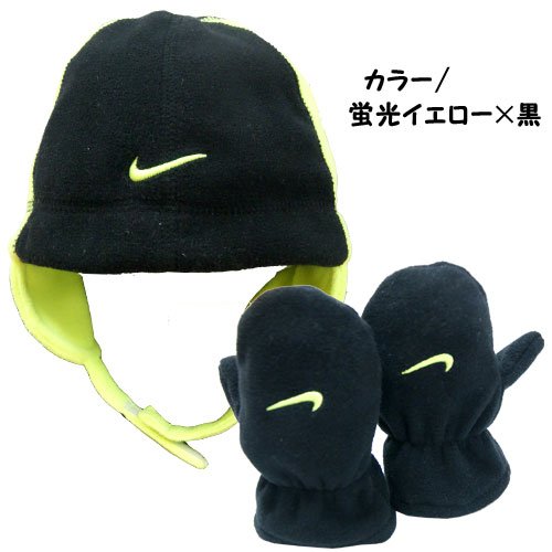 NIKE ナイキ フリース ベビー帽 ベビーハット ミトン セット-蛍光イエロー×黒/約46~48cm