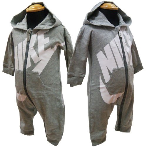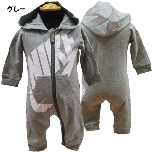 NIKE ナイキ ベビー カバーオール ベビー服 つなぎ オールインワン-グレー3/6ヶ月=65~70cm
