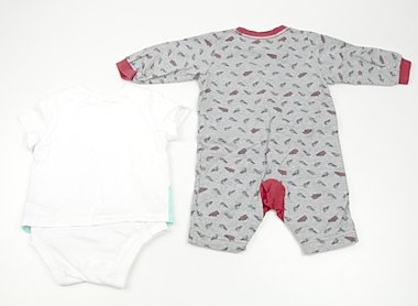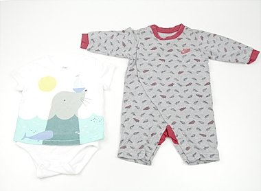 グレー×赤がNIKE(全体に毛羽立ちあり)、アシカさんロンパース(毛玉・色あせ・衿ぐり変色あり)がGAPです。お得な2枚セットです。洗い替えにいかがでしょうか?