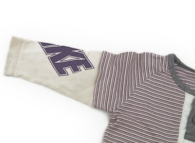 - 袖口黒ずみ・シミがあり、前あきの白い部分に薄い汚れがあります。手触りのいいカットソーなので普段着としていかがでしょう。ピンクのボーダーですが男の子もかわいいと思います。(記名あり)