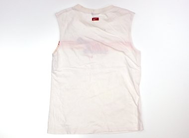 ブランドタグが切り取られています。肩幅35cm、バスト39cm、総丈55cm、130cmサイズ相当と思われます。首元のヨレや使用感もみられますが、まだまだお使いいただけそうです。
