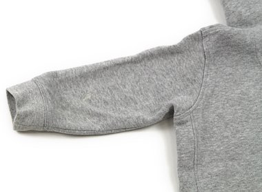 実際のサイズ表記は12-18monthsです。裏起毛のスウェット素材。全体的に毛羽立ち・前中心にシミが点々とあります。袖にも2cmほどの汚れがありますが普段着としていかがでしょうか。プリント割れはなくキュートです。