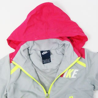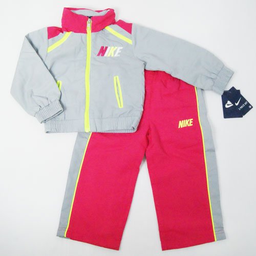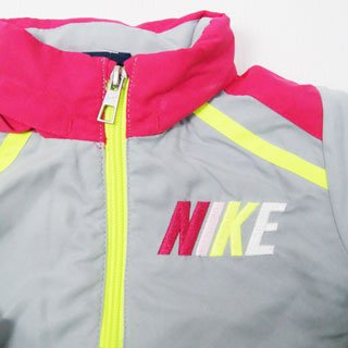 【アメリカ買付商品】 NIKE ナイキ ベビー フード付 ウインドブレーカー&パンツ上下セット インナーフード付 フードは襟元に収納できるようになっています。 メッシュ裏地・両脇ポケット付 ※防水ではありません。 サイズ: 12ヶ月=身幅27cm 肩幅26cm 袖丈27cm 着丈31cm 股下23cm 18ヶ月=身幅28cm 肩幅26.5cm 袖丈28cm 着丈32cm 股下27cm 24ヶ月=身幅29cm 肩幅27.5cm 袖丈32cm 着丈34cm 股下30cm カラー:グレー×ピンク 素材:ポリエステル100% 洗濯表示:洗濯機可 輸入国:アメリカ 生産国:中国