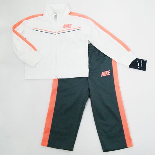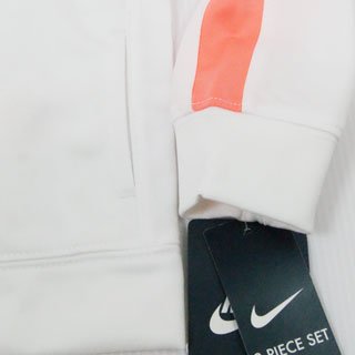 【アメリカ買付商品】 NIKE ナイキ ベビー ジャージ上下セット 動きやすくって楽チン オシャレで機能性抜群のオススメアイテムです☆ 両脇ポケット付き サイズ: 12ヶ月=身幅29cm 肩幅23cm 袖丈28cm 着丈29cm 股下23cm 18ヶ月=身幅30cm 肩幅24cm 袖丈29cm 着丈31cm 股下23cm 24ヶ月=身幅31cm 肩幅24cm 袖丈35cm 着丈33cm 股下30cm カラー:ホワイト 素材:ポリエステル 100% 洗濯表示:洗濯機可 輸入国:アメリカ 生産国:インドネシア