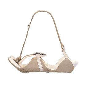 授乳・寝かしつけとお出かけでの使用ができる、横抱き専用子守帯の『はじめてホールド ミルク&スリープ』。ホールドベルトをはずせば、シートが全開するため、赤ちゃんの乗せ降ろしも簡単に行える。赤ちゃんの体格や体に合わせて、座面の立ち上がりを調節し、赤ちゃんの足をベストな角度でキープ。幅の広い1本の肩帯なので、肩への負担も軽減。授乳時の左右の交換が素早くできる。