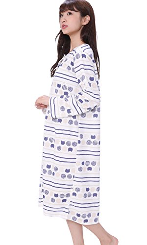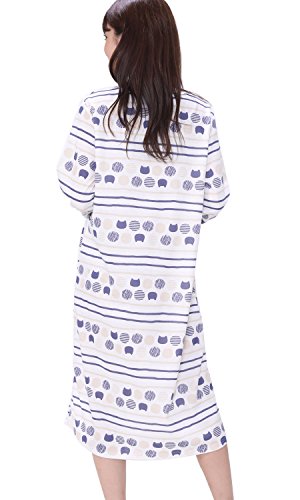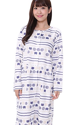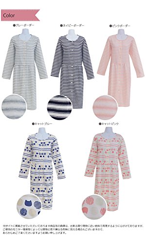 90096 ネグリジェ マタニティ パジャマ レディース 長袖 前開き ダンボールニット素材【キャットブルー】