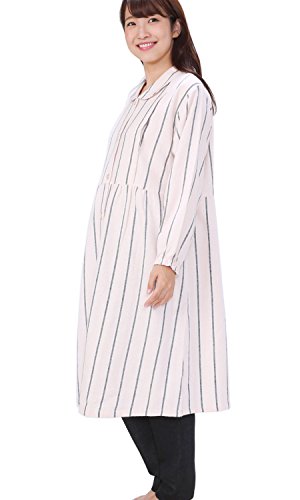74150 パジャマ マタニティ レディース 長袖 前開き 授乳口付 産前産後 100丈 ビエラ素材 両面起毛 綿100%【5ピンクストライプL】