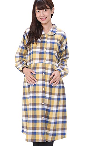 74150 パジャマ マタニティ レディース 長袖 前開き 授乳口付 産前産後 100丈 ビエラ素材 両面起毛 綿100%【3イエローチェックL】