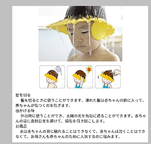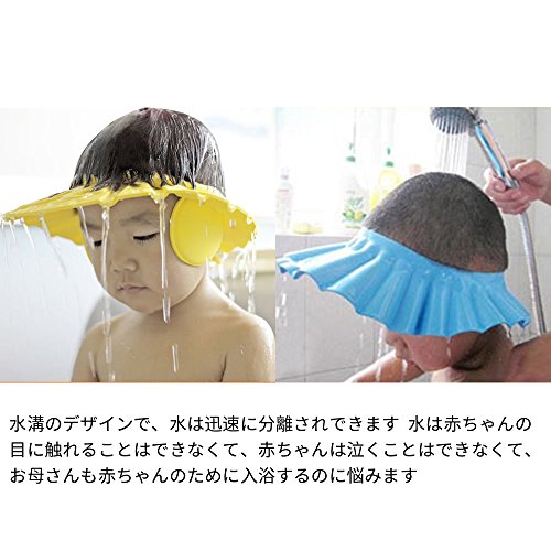 NIUAO シャンプーハット バスグッズ シャンプーキャップ お風呂 可愛い ベビー用品 サイズ調整可能 耳のシールド付き 樹脂 (黄)