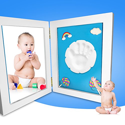 Joinvalue 足形フレーム 赤ちゃんの手形 木製フレーム ベビーフレーム記念品 フットプリントフレーム 安全な非毒性の粘土、良品質の木製フレーム 出産祝い (男の子)