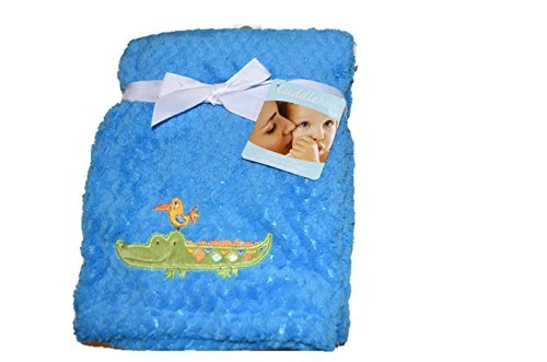 Cuddle Me Baby Blanket by NoJ0-Blue with Alligator and Bird by NoJo